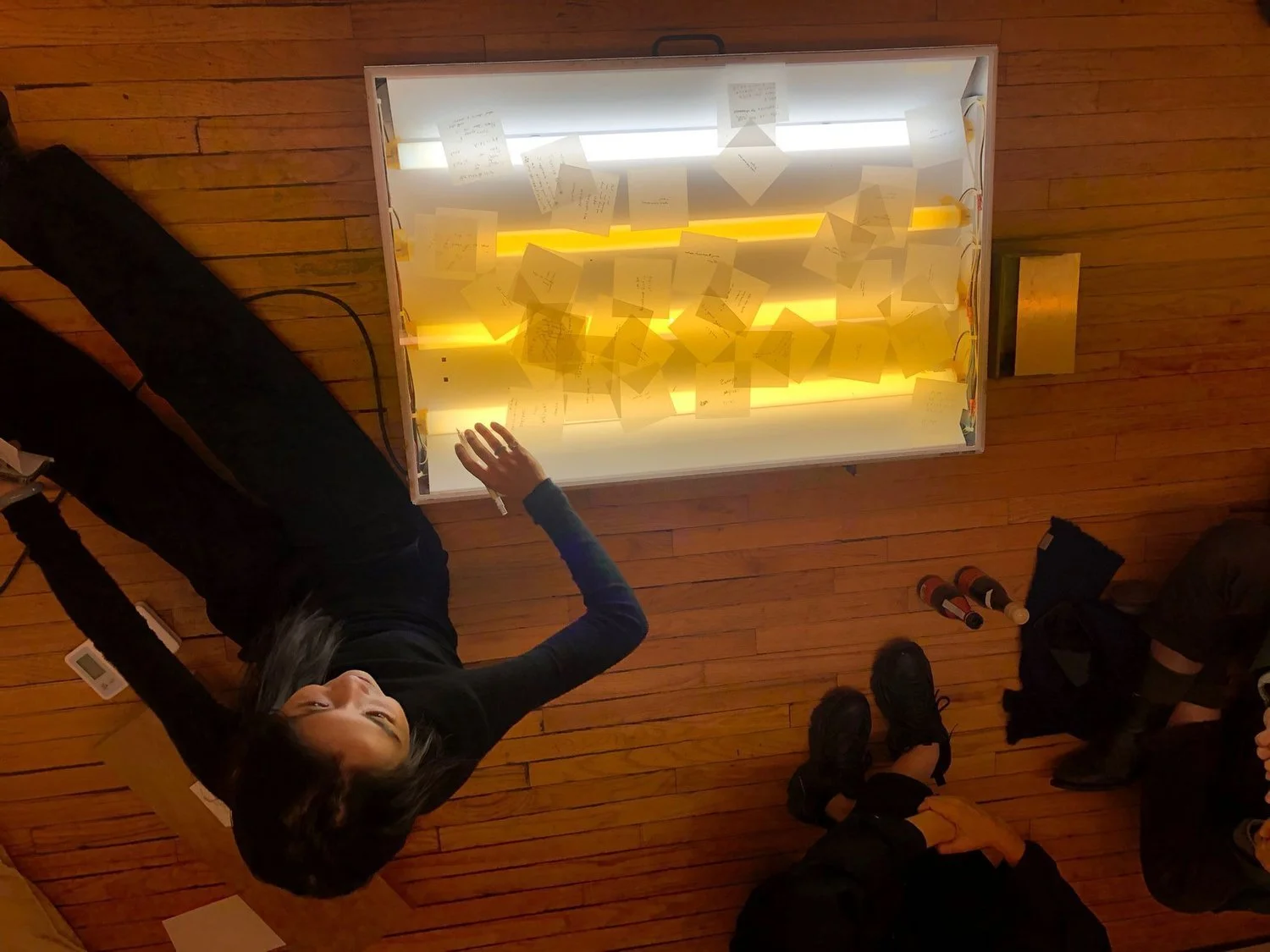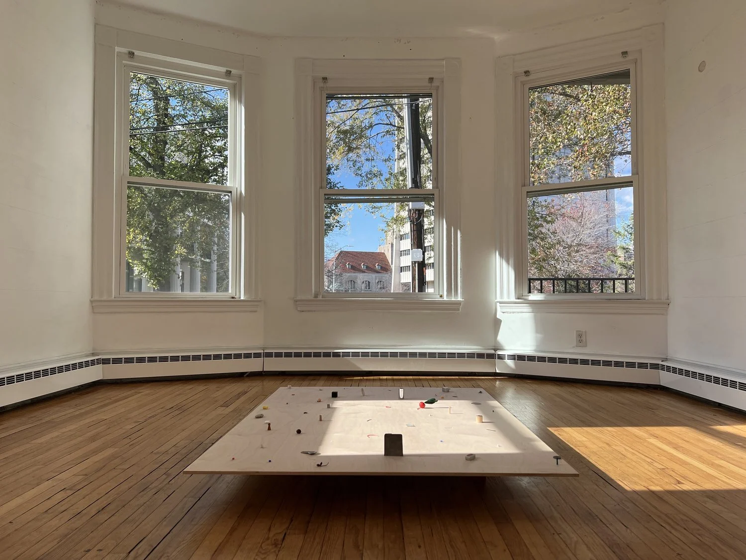 This show is about color, proportion, placement, detail, scale, tininess, enormousness, cracks, sheen, corner, patina, distance, gifts, transparency, opacity, marks, fuzziness, sharpness, softness, wood, twisting, metal, clip, rolling, balancing on an edge, casting, facts, time, being on time, double time, words